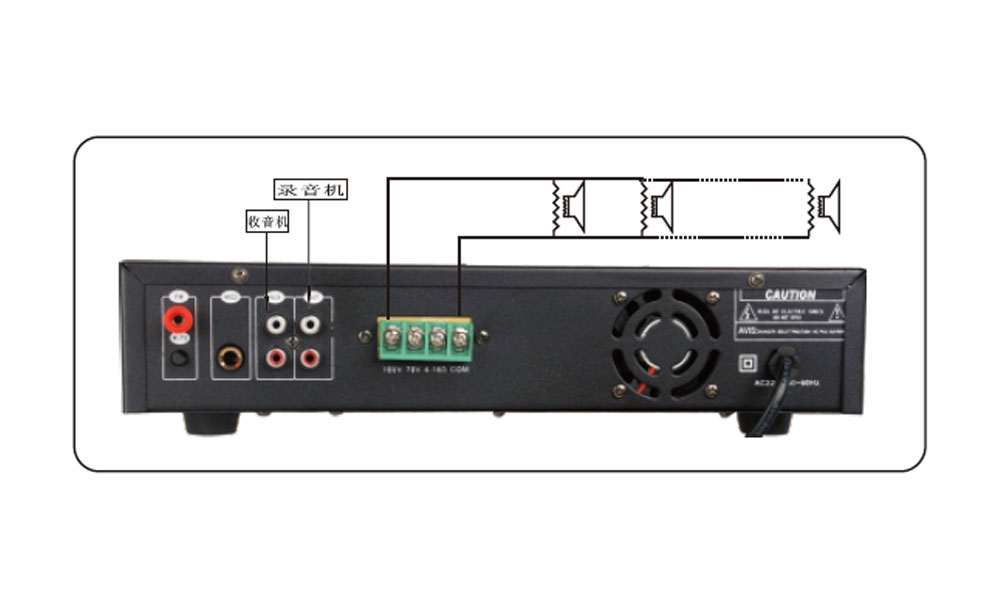 7、1路話筒輸入,1路線路輸入;1 0 0 V/70V定壓輸出和4 - 1 6Ω定阻輸出。