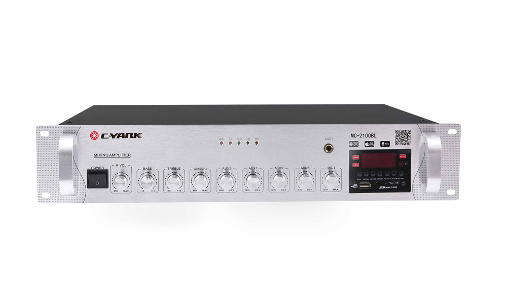1、3路話筒輸入,3路AUX輸入,1路MP3輸入,1路AUX輸出;100V、