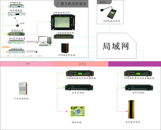 根據(jù)功能區(qū)域共分為3個區(qū)域,具體分布如下:公園公共區(qū)、文化室、服務(wù)站等為了提高公園的弱電整體使用需求,提供公園的整體形象,滿足現(xiàn)代化公園的公共背景音樂播放,現(xiàn)擬在公園背景音樂廣播系統(tǒng),公共/應(yīng)急廣播為公園日常提供休閑的背景音樂、日常公園緊急信息的快速發(fā)布;