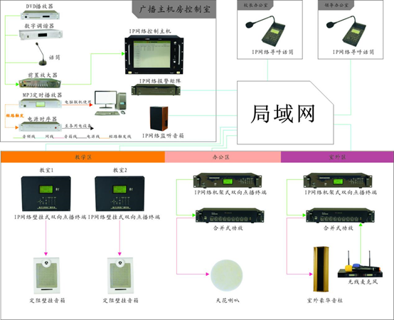 根據功能區域共分為5個區域,具體分布如下:門診科室、走廊、公共區、室外、宿舍等為了提高醫院的弱電整體使用需求,提供醫院的整體形象,滿足現代化醫院的公共背景音樂播放,現擬在醫院背景音樂廣播系統,公共/應急廣播為醫院日常提供休閑的背景音樂、日常醫院緊急信息的快速發布;