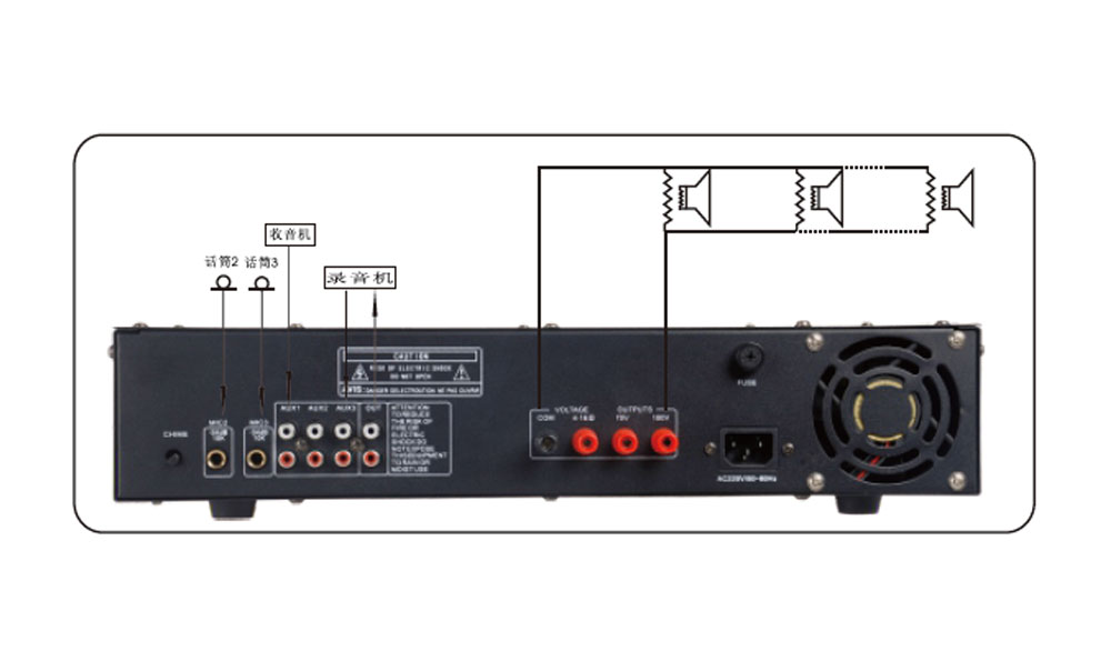 * 3 AUX inputs, 3 MIC inputs(MIC 1 has Mute function for emergency input), 1 AUX output.