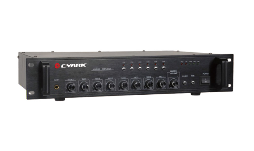 1,3-channel microphone input, 3-way AUX input, 1 AUX output; 100V, 70V constant voltage output and 4-16Ω constant resistance output, 5 units LED level indication;