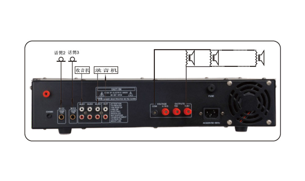 * 3 AUX inputs, 3 MIC inputs (MIC 1 has Mute function for emergency input),1 MP3 input;1 AUX output.