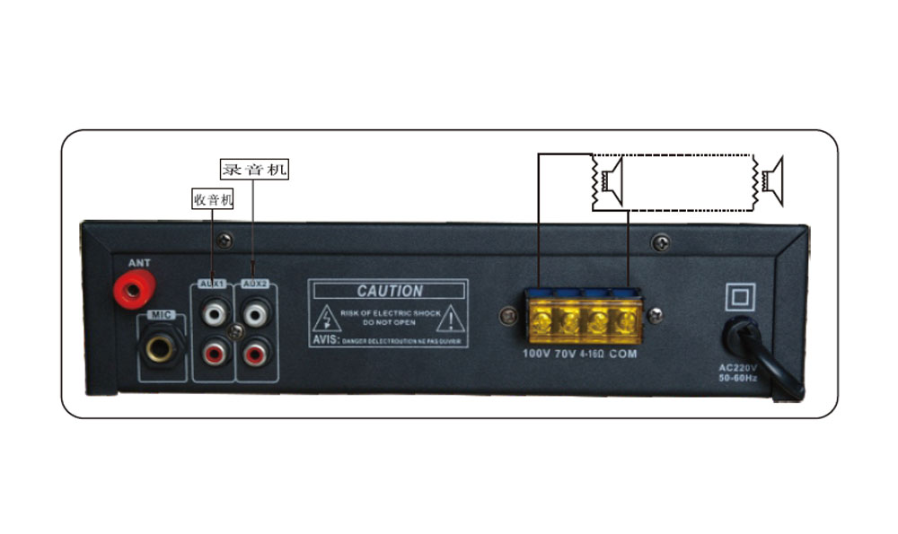 * 2 MIC inputs,1 AUX input(MIC 1 has Mute function for emergency input).