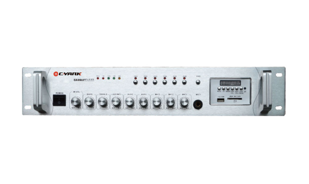 * 3 AUX inputs, 3 MIC inputs(MIC 1 has Mute function for emergency input), 1 AUX output.