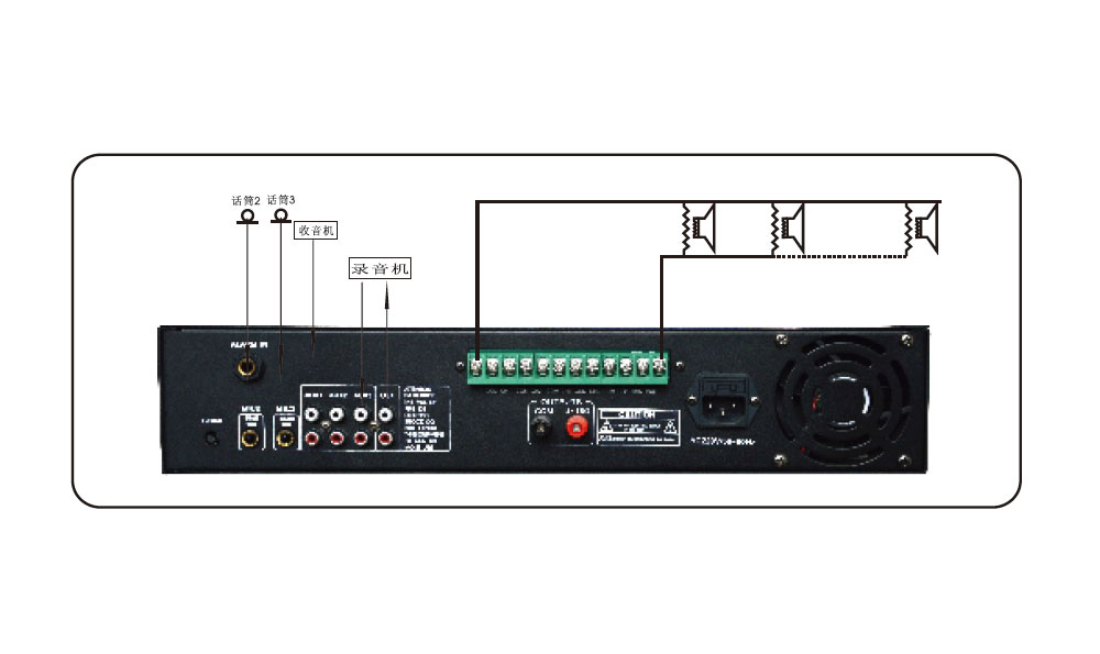 * 3 AUX inputs, 3 MIC inputs(MIC 1 has Mute function for emergency input), 1 AUX output.
