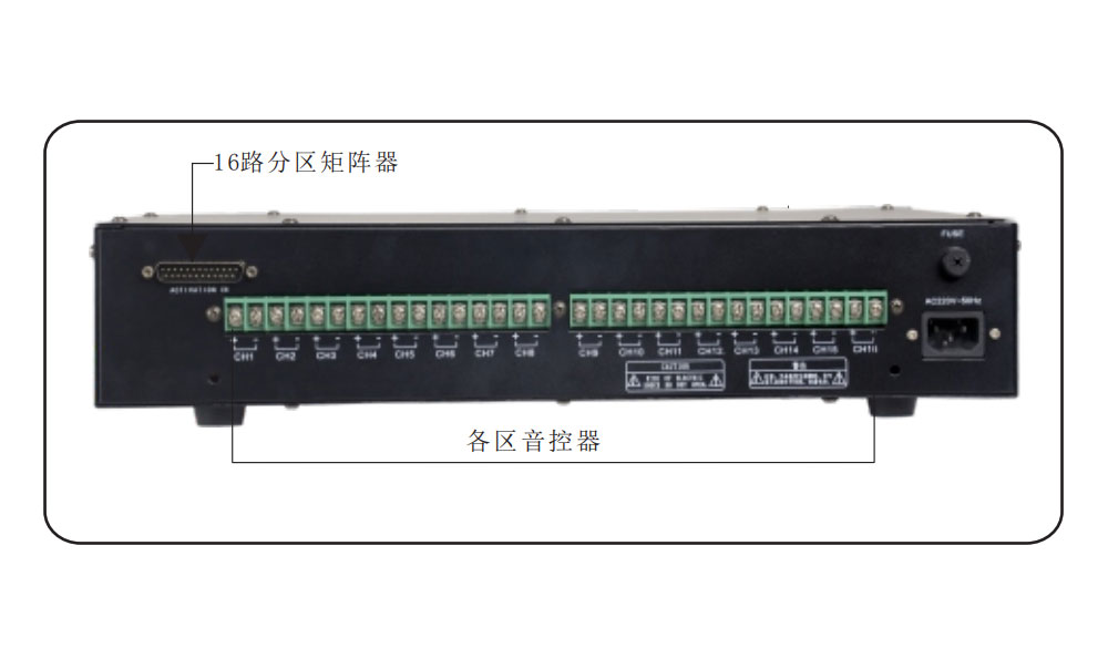 1.16 Channels short circuit triggered signal inputs( connect with 16 channels paging matrix)